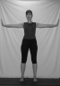 Standing Twist: (Slims waistline, strenthens arms and shoulders, promotes spine flexibility) Stand with feet one foot apart. Hold arms straight out to the sides with palms facing outward.